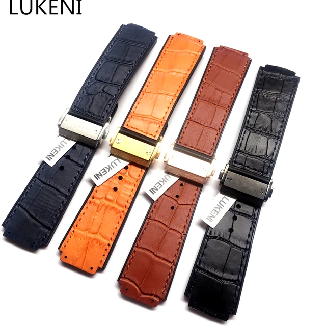 | [해외]Lukeni 25 미리메터 * 19 미리메터 블랙 블루 브라운 orange 천연 고무 가죽 손목 버클 교체 hublot 빅뱅 시계 스트랩 |