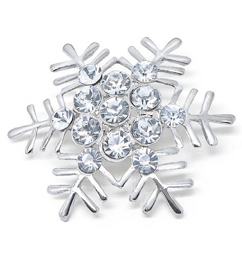 -. Feature : Silvertone brooch pin / Snowflake design with rhinestone accent / Measures approximately 2" x 2" / Ideal for winter holiday, wedding, bridesmaid, anniversary, cocktail party