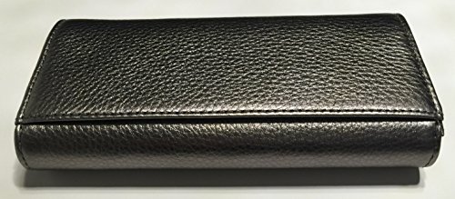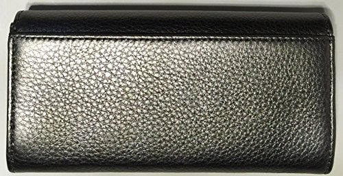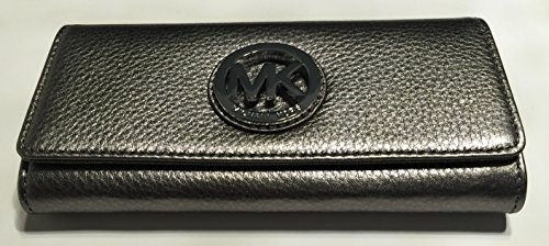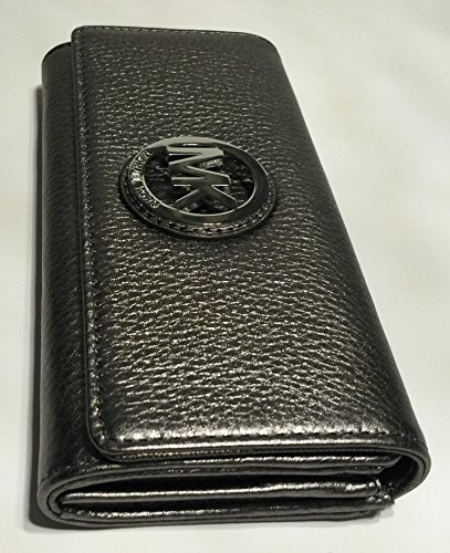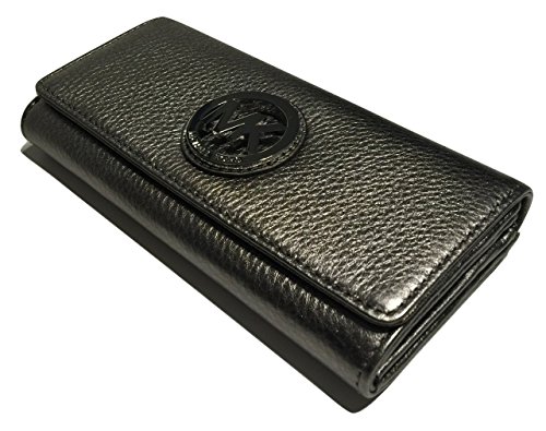 This flap wallet from Michael Kors is wrapped in beautiful pebbled leather with golden tone hardware. It is accented with Michael Kors circular logo on the front and secures with a snap closure. The leather and fabric interior features 6 credit card slots, a zippered coin compartment and several full length bill compartments. There is a full length open slip pocket on the back. It measures approximately 7.75 inches (L) x 4 inches (H) x 1 inch (W). Comes with a beautiful Gift Box.Feature
