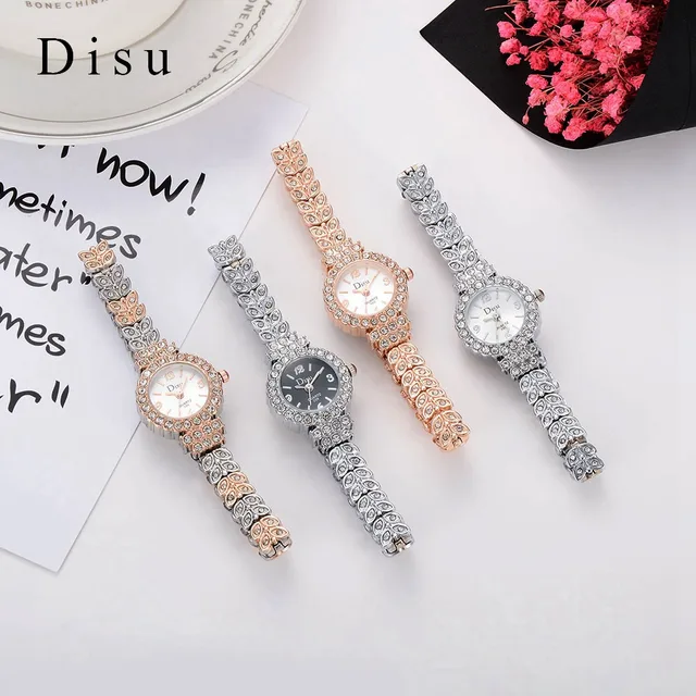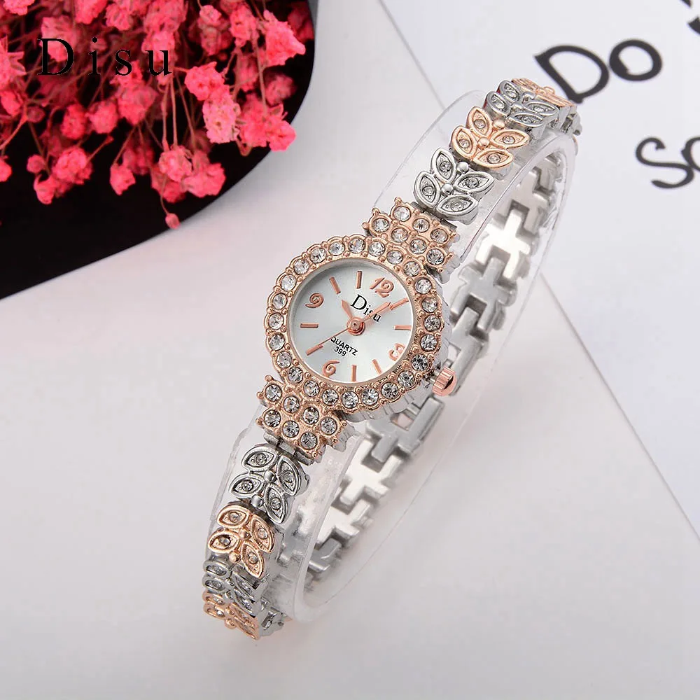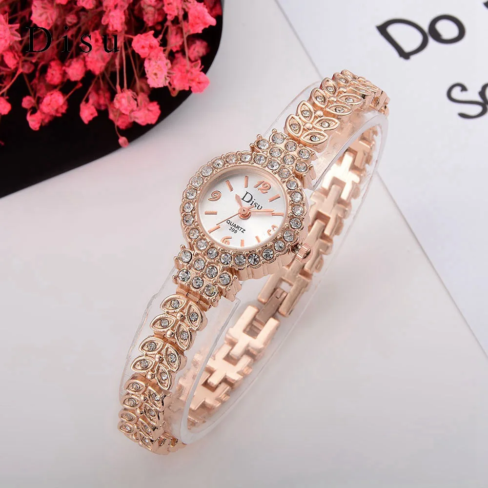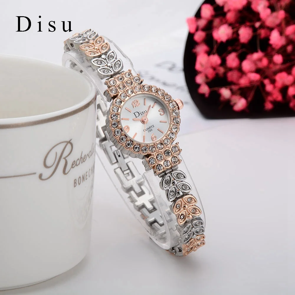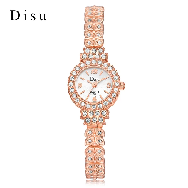 | [해외] Disu 2017 새로운 브랜드 패션 캐주얼 여성 팔찌 시계 로즈 골드 합금 손목 시계 크리스탈 여성 드레스 시계 석영 시계 DSU029 |