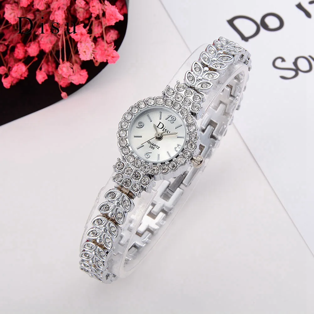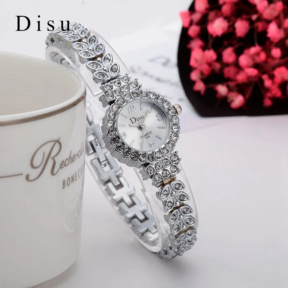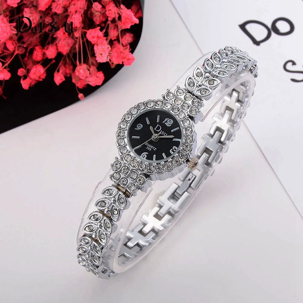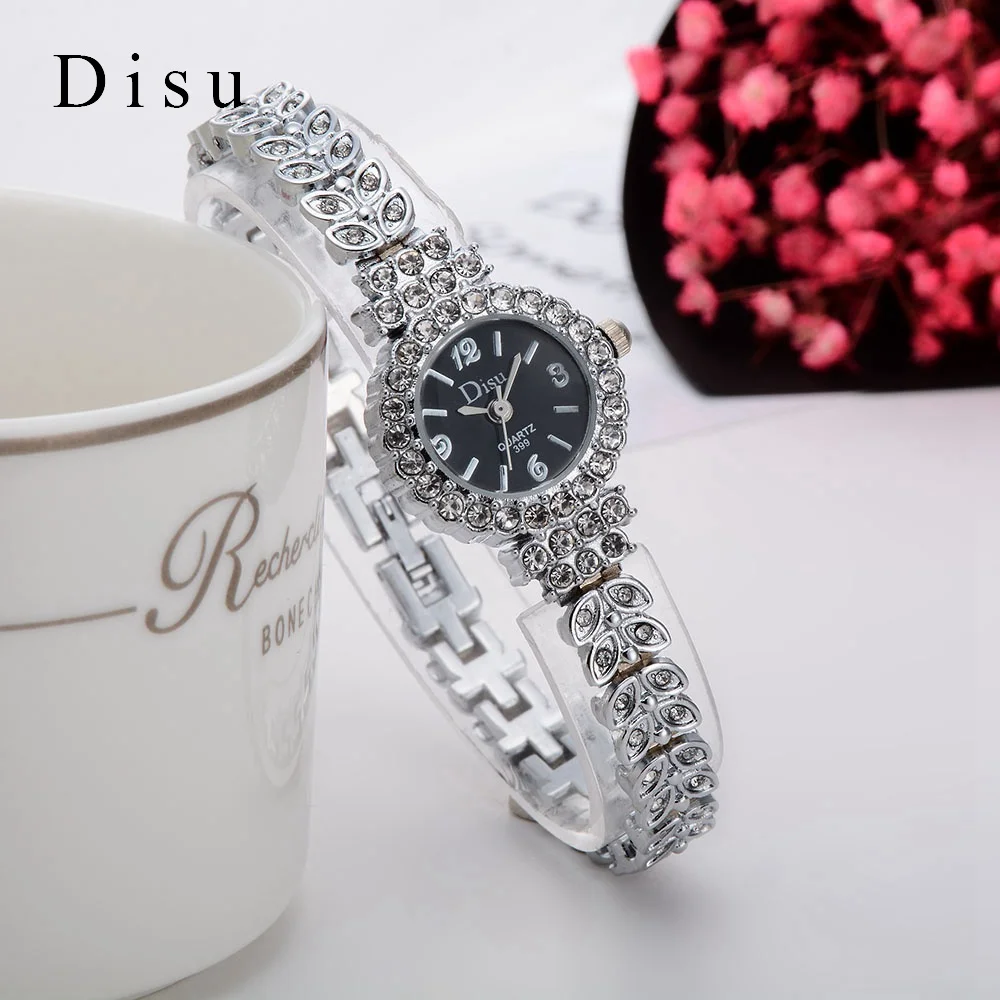 | [해외] Disu 2017 새로운 브랜드 패션 캐주얼 여성 팔찌 시계 로즈 골드 합금 손목 시계 크리스탈 여성 드레스 시계 석영 시계 DSU029 |