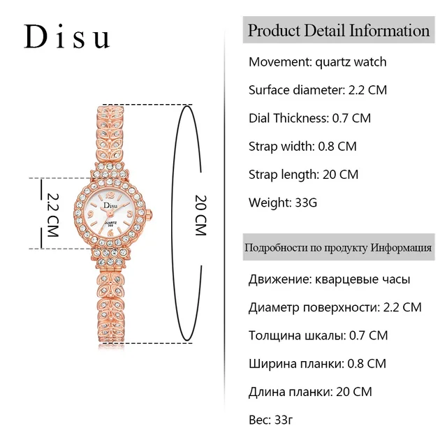 Disu 2017 새로운 브랜드 패션 캐주얼 여성 팔찌 시계 로즈 골드 합금 손목 시계 크리스탈 여성 드레스 시계 석영 시계 DSU029 운동: 석영 시계 표면 직경: 2.2 센치메터 다이얼 두께: 0.7 센치메터 스트랩 폭: 0.8 센치메터 스트랩 길이: 20 센치메터 무게: 33 그램 포장 상세