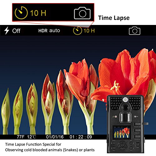 【Multi function& Patented Motion Freeze 】Outdoor wildlife camera is IP66 Waterproof for outdoor use,Barometric pressure, moon phase, temperature, time, date and camera ID stamp,GPS ID stamp on the picture or video,Motion detect function is useful for cold blooded animal and surveillance security, Patented motion freeze function automatically adjust night vision effect,avoid mistaking