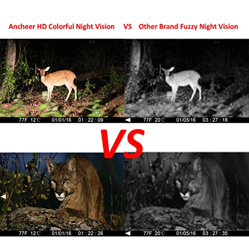 【HD Color Photos& Videos Day and Night】The hunting camera capture 12MP HD Resolution Photo ,plus 1280P HD video superiority with a great Audio quality,1-9 pictures on one trigger,0.6s Trigger Time,5 Capture mode: PIR camera or video, camera+video, time lapse, motion detection,high quality Full color pictures or videos day and night if you choose