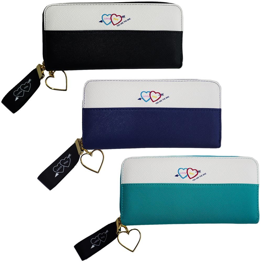 お札やレシート、小銭をすっきり収納できるのが魅力!!デザインと使いやすさを兼ね備えたラウンド長財布。ハート型モチーフとテープの引き手が可愛い♪ |