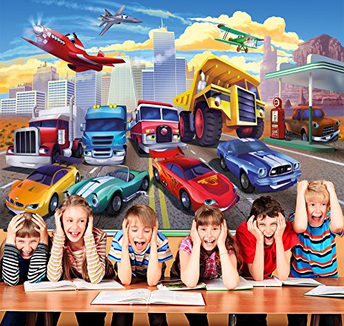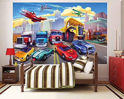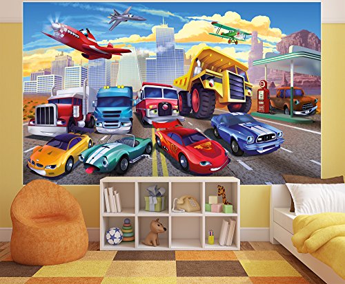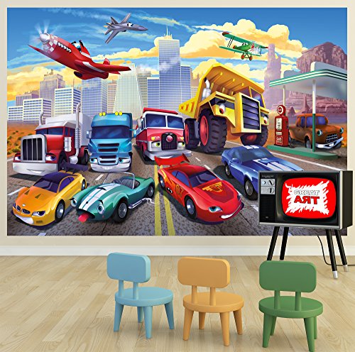 Wallpaper Children's room cars planes race cars - decoration cars - fire brigade - GREAT ART 55 Inch x 39.4 Inch
