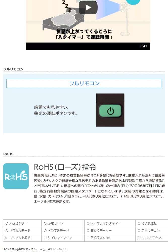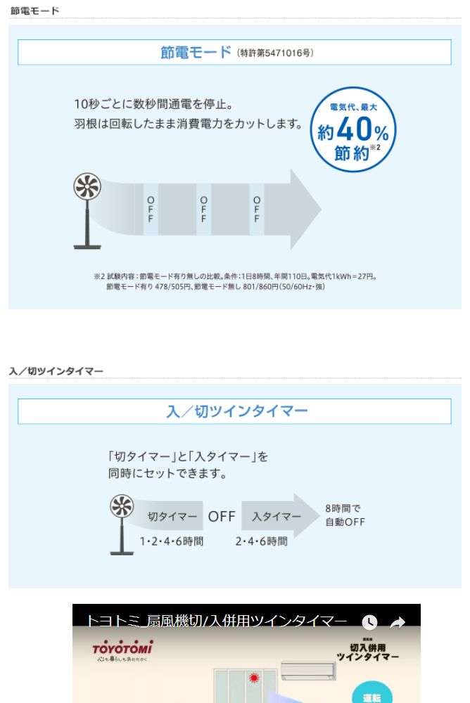 ●定格消費電力 : 32/35W(参考・そよ風)22/22W
