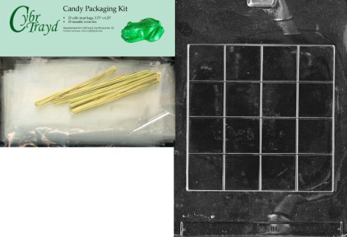 Cybrtrayd Chess and Checker Board Miscellaneous Chocolate Candy Mold with Packaging Bundle of 25 Cello Bags, 25 Gold Twist Ties and Chocolate Molding Instructions