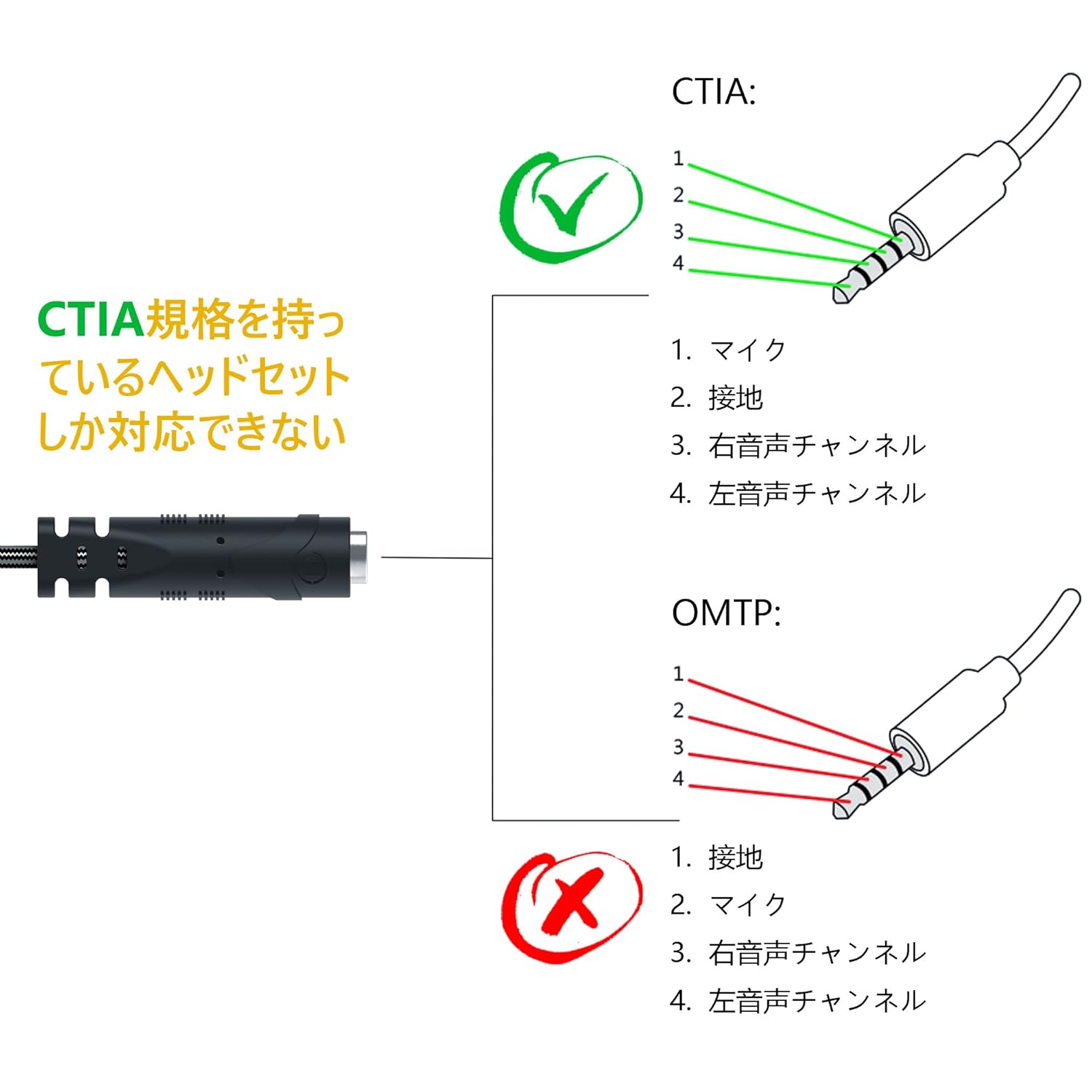 PC等にスマホやタブレット付属の4極端子(CTIA規格)接続イヤホンマイクを接続できるケーブル