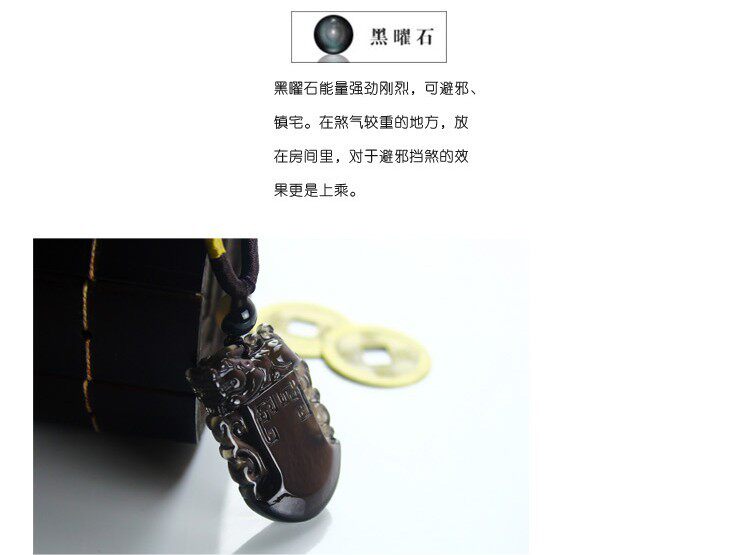 Obsidian corresponding submarine wheel can effectively remove the bodyof negative energy and promote new energy; helps to eliminate fatiguestress headaches absorption the body eliminate disease gas oil and gas,and quickly restores the physical strength improve the general deficiency of Qi of the problem, improve physical vigor and stamina is most canprotect the health of the gem; for the bad luck of the people, more is vitiatedoverweight which can effectively absorb the body foul air andtransformation to improve and enhance the luck the intrusion indigointerference defense ability.