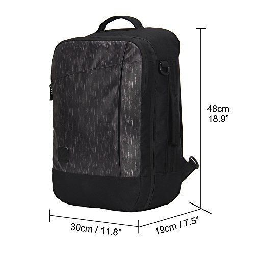 -. Feature : Material: Selected aurora pattern fabrics + water repellent polyester/PVC + smooth zipper + premium accessories / Dimensions: 18.9 x 11.8 x 7.5 inches / 48 x 30 x 19 cm; Fits max size allowance of IATA airlines, AA, United Airlines etc, specifically for many budget airlines / Capacity: 28L; Ample space for purpose of domestic tours, weekend days off, business trip, short international travel etc / Features: convertible backpack - hand lage - briefcase - shoulder messenger bag design; with suitcase-style compartment, organized pockets, separated laptop compartment, savable shoulder straps and sternum strap / Please roll down the page to the A+ description for more detail about this bag