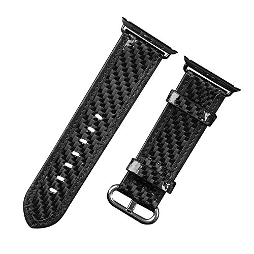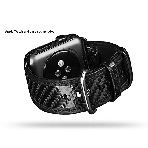 Real Carbon Fiber and Leather Band for Apple Watch 42mm, Series 1 and 2 - by Carbon Fiber Gear