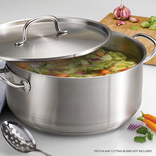 Studio : Tramontina Publisher : Tramontina Binding : Kitchen Product Description Tramontina's Pro-Line 9 Qt. Stainless Steel Dutch Oven is ideal for making large batches of stew, soups, vegetables and seafood. Its durable 18/8 stainless steel impact-bonded construction features an attractive, fine satin finish with mirror polished accents, and a tri-ply base that provides quick and even heat distribution for exceptional cooking performance on induction, gas, electric, and ceramic glass cooktops. The stainless-steel handles provide added support when handling a filled pot. This Dutch oven is NSF certified and dishwasher-safe for convenient clean up. 0