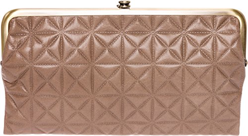 Seamlessly mixing style and function, this Quilted Embossed Lauren Leather Clutch Wallet by Hobo transitions perfectly from day to night! This bifold wallet is made from top-grain genuine leather that features an eye-catching, embossed quilted pattern. The interior of this clutch contains 3 card slots, 1 clear ID window, and a roomy zippered pocket that's kept secure by a magnetic closure. One clasp compartment features 2 bill compartments & 6 card slots while the other contains a zipper pocket and space for your cell phone. The abundance of storage compartments gives you plenty of options to keep your essentials organized. Measures 8.75" x 5" x 2", folds out to 9.25" wide.Feature