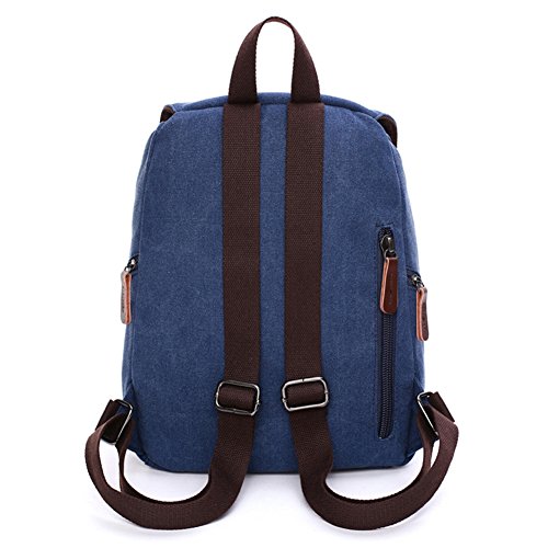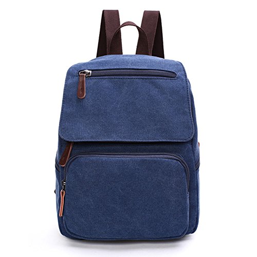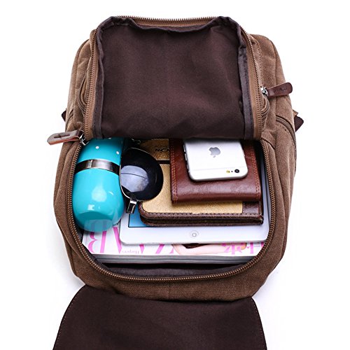-. Feature : Made of high quality 16oz canvas and durable polyester cotton. / Two adjustable straps for carrying comfort, Fold-over flap with snap covers zipper closure for more secure. / Approx dimensions are 10.23(L)*4.13(W)*14.17(H) inch. / Structure: 1 large main compartments, 1 inner iPad compartment, 2 side zipper pockets, 2 front zipper pockets and 1 back zipper pocket. / This vintage backpack is quite roomy and plenty of space to carry all you daily essentials, great for casual day use and for students going to school & college, travel & outdoor.