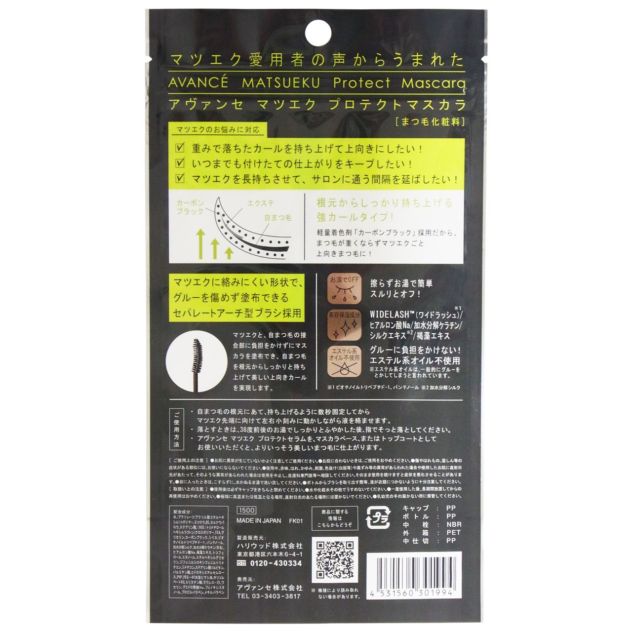 A lightweight coloring agent (carbon black) which does not make the eyelashes heavy is adopted, and the ester type oil which puts a burden on the glue is not used, and of course made-in Japan.