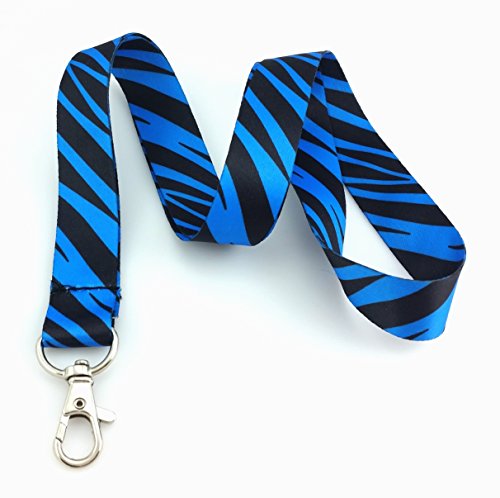 Electric Blue and Black Zebra Animal Print Lanyard Key Chain Id Badge Holder