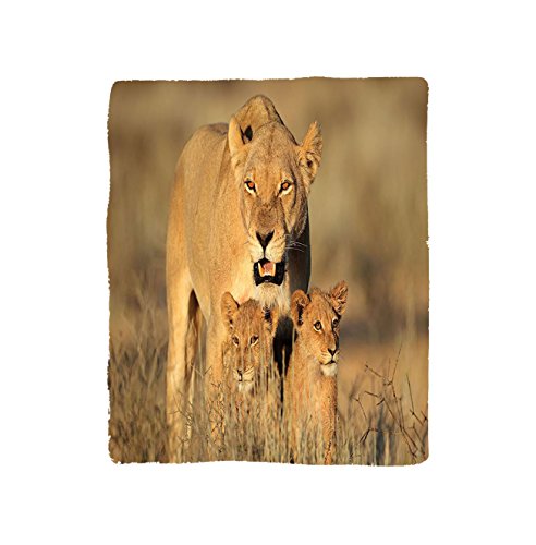 (kisscase)/Bedding Bath/Bedding/DIRECT FROM USA/Kisscase Custom Blanket Safari Mom Lioness and Young Lion Kings in South African Nature Big Cat...