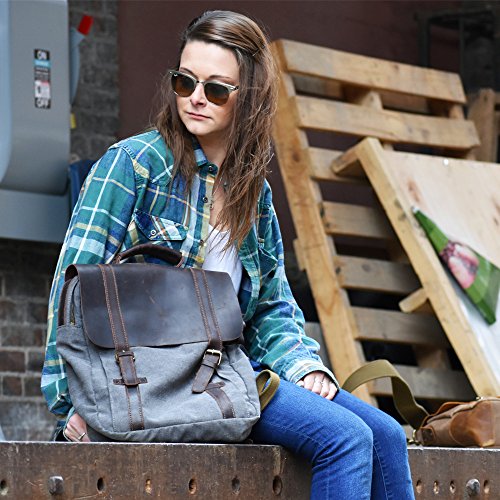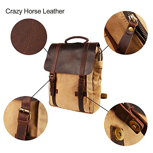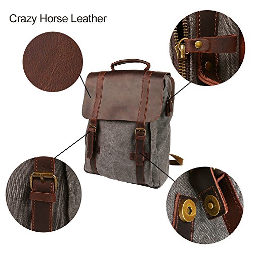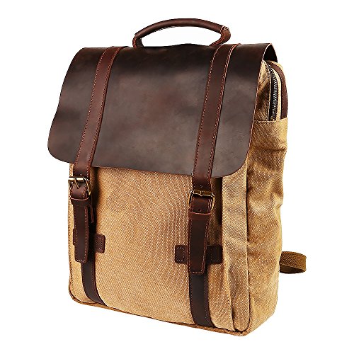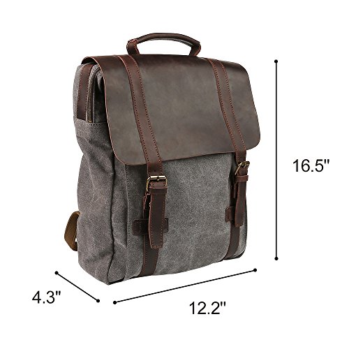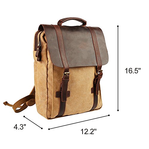 -. Title : Travables 15.6” Laptop Bag Vintage Canvas Leather Backpack Casual Daypack Retro Rucksack for Men Women Work Campus Outdoor Sports