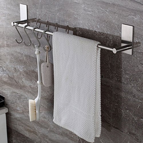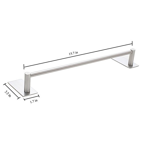 Bosszi Self Adhesive Bathroom Towel Bar Brushed SUS 304 Stainless Steel Bath Wall Shelf Rack Hanging Towel Stick On Sticky Hanger Contemporary Style (16 Inch)