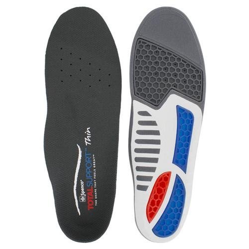-. Binding : Health and Beauty -. Brand : Spenco -. Color : Grey -. Department : unisex-adult -. EAN : 0882998629377 -. Feature : Thin insoles fit in almost any shoe but give full support / Features increased shock absorption / Advanced support for the arch and heel / Stiffer black pod counters over-pronation, softer red pods guide the stride / Great for athletes who participate in a variety of low-demand physical activities and need semi-rigid support -. Label : Spenco -. Manufacturer : Spenco -. PackageQuantity : 1 -. ProductGroup : Health and Beauty -. ProductTypeName : HEALTH_PERSONAL_CARE -. Publisher : Spenco -. Size : Men's 14-15 -. Studio : Spenco -. Title : Spenco TOTAL SUPPORT THIN INSOLES 46-216 (Mens 14 - 15 1/2 (#6)) -. UPC : 701773719143