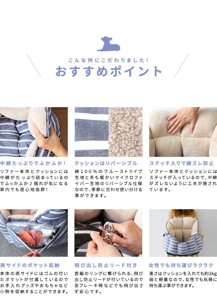 The sofa body and the cushion are filled with plenty of cotton, so it's quite fluffy ♪ It's pretty comfortable even in the car where shaking is anxious!
