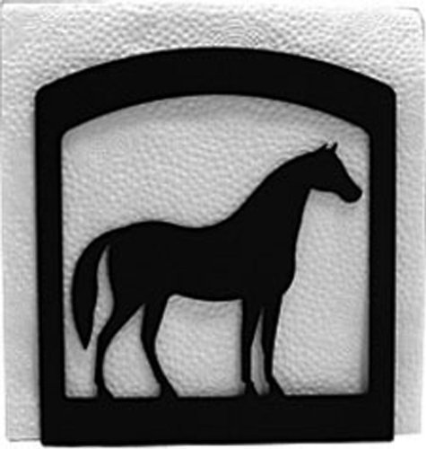 -. Binding : Kitchen -. Brand : Iron Works -. Color : flat black -. EAN : 0731000013850 -. Feature : MADE in the USA! Supporting United States craftsman. / Hand crafted wrought iron, with a baked on flat black powder coating; lead free & rust resistant / Long lasting wrought iron for indoor or outdoor use. / Black oxide 1" #8 Phillips Pan Head Screws are included if required. / Decorate your entire living environment with the elegance of wrought iron. The metal used in our wrought iron products contain alloys of .01% to .29% carbon and iron. The silhouettes are cut from sheets of this low carbon wrought iron on a laser cutter and are then hand welded if needed, or hand bent, and then powder coated. A new modern and artistic way is how our products are made; appearing very different from the well-known medieval "hammer and anvil" look popular culture is accustomed to. -. MPN : 6693 -. PartNumber : 6693 -. ProductGroup : Kitchen -. ProductTypeName : KITCHEN -. Size : Standard -. Title : Iron Horse Napkin Holder - Black Metal -. UPC : 731000013850