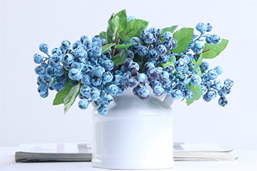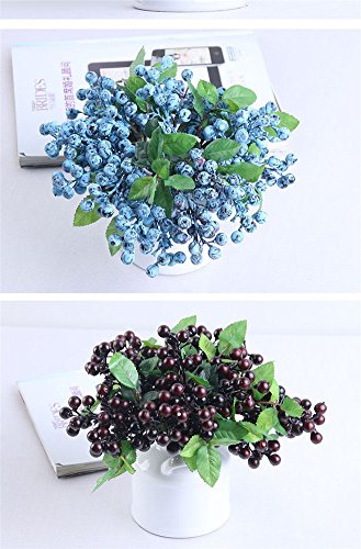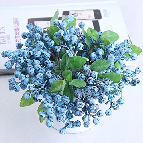 Crt Gucy 6 Pcs Plastic Artificial Blueberry Fruit Artificial Flowers California Berries For Home Decoration, Blue