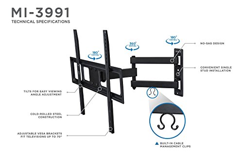 -. Title : Mount-It! MI-3991L Wall Mount Bracket with Full Motion Articulating Arm 17-Inch Extension for 37-70 Inches LED, LCD OLED TVs, VESA 600x400