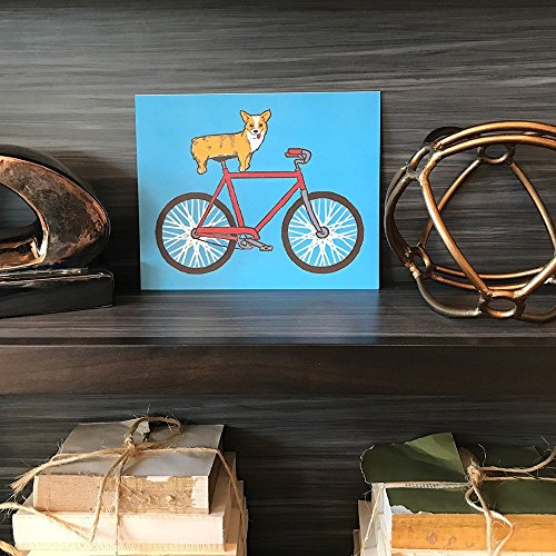 Cute Corgi Bike Art Print Funny Dog Lover Bicycle Wall Poster Animal Riding Red Fixie Home Decor Illustration 8 x 10 Inches