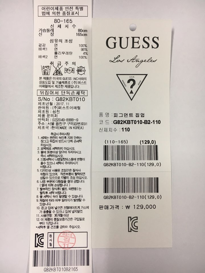 제조자 : 성진 퍼스트어패럴