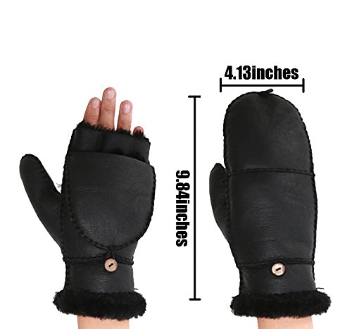 Enough to burn the whole winter One size for honorable yours and wear comfortable One sheep fur with open fingertips and a flap mitten cover Perfect for outdoor play or work like texting, typing, writing in cold temperatures Mittens flat size(become mittens): total length about 9.8inches/25cm; palm width about 4.1inches/10.5cm Note:? It's not washable. Clean it with clean liquid then Air drying Avoid rain, damp, not close to high temperature, otherwise easy to lead to fading and cracking 0 |