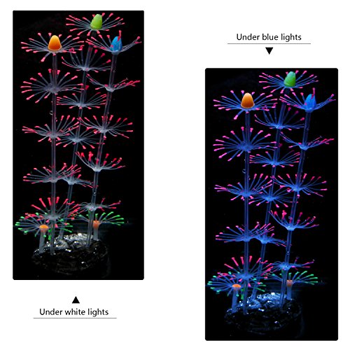 Easy Installation Artificial Mushroom - Simply apply the ornament to the tank bottom; There is a suction cup which can be fixed on the bottom of the fish tank. To get better effect, we recommend blue & white light, blue or purple light.