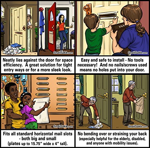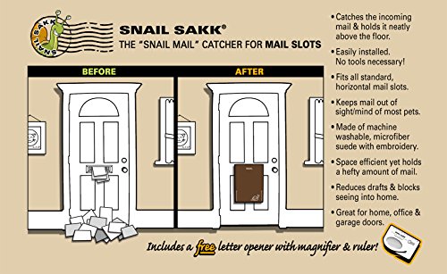 SNAIL SAKK is an original invention created many years ago to help mail slot users everywhere with the only space efficient solution to catching their mail--no more bulky baskets or cages!