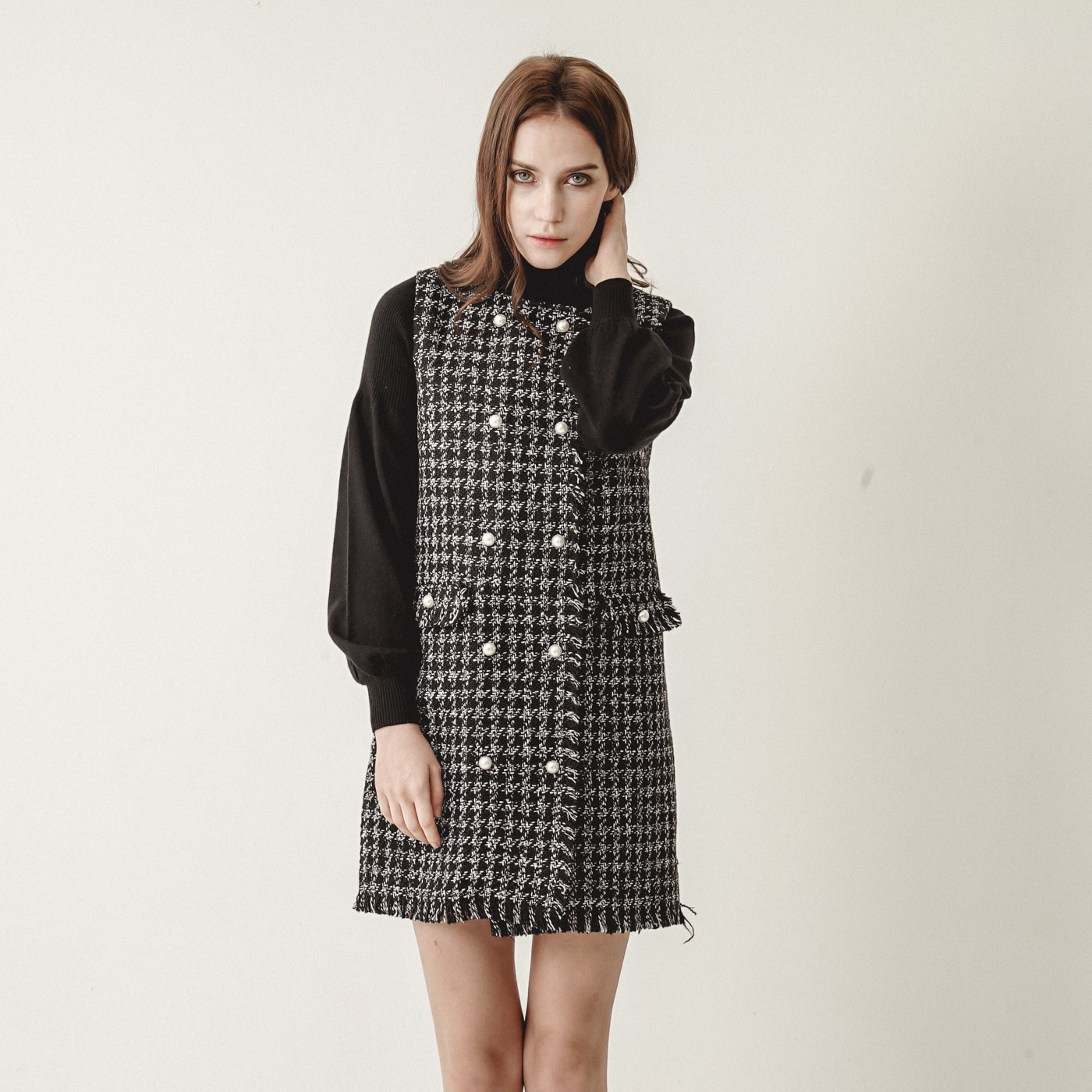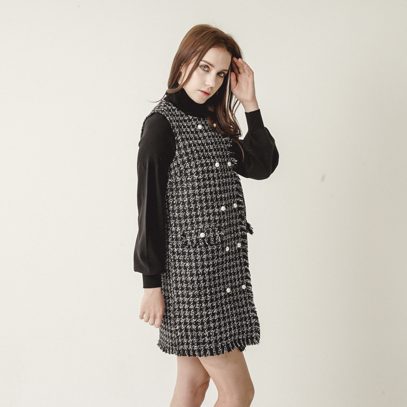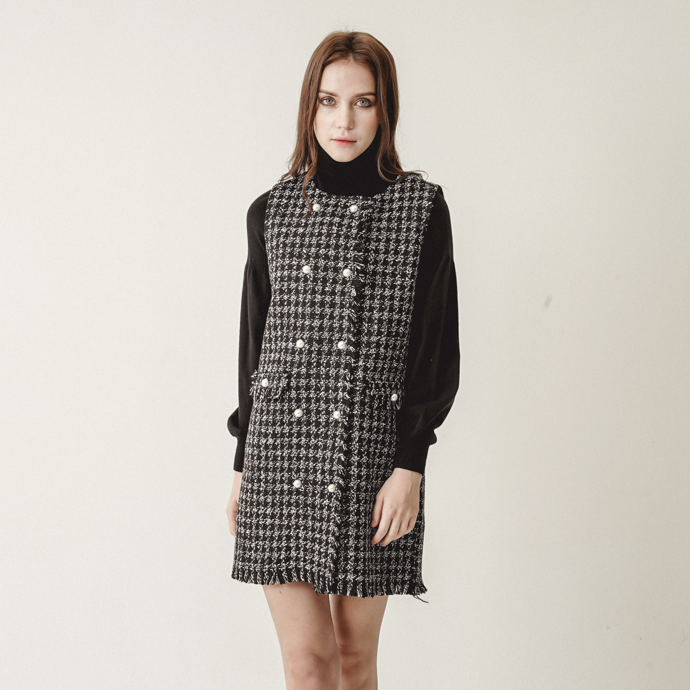 컬러감과 진주 포인트 단추가 예쁜 트위드 원피스입니다.