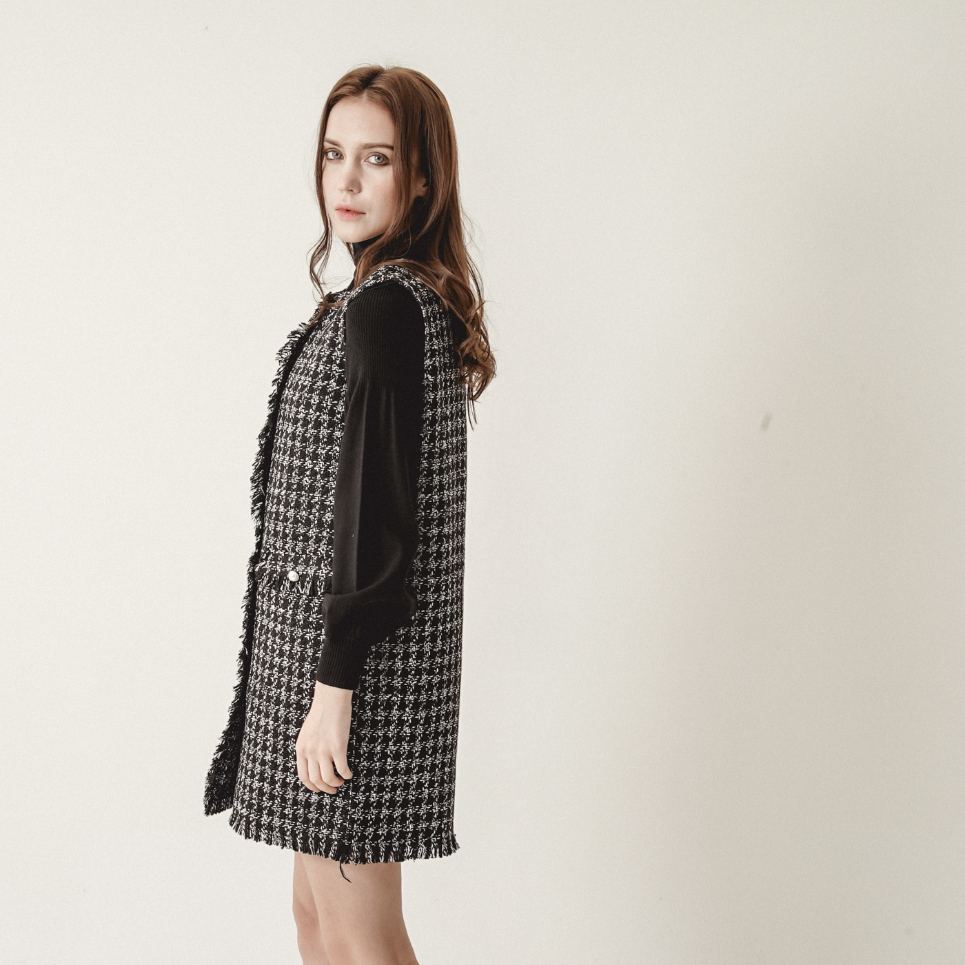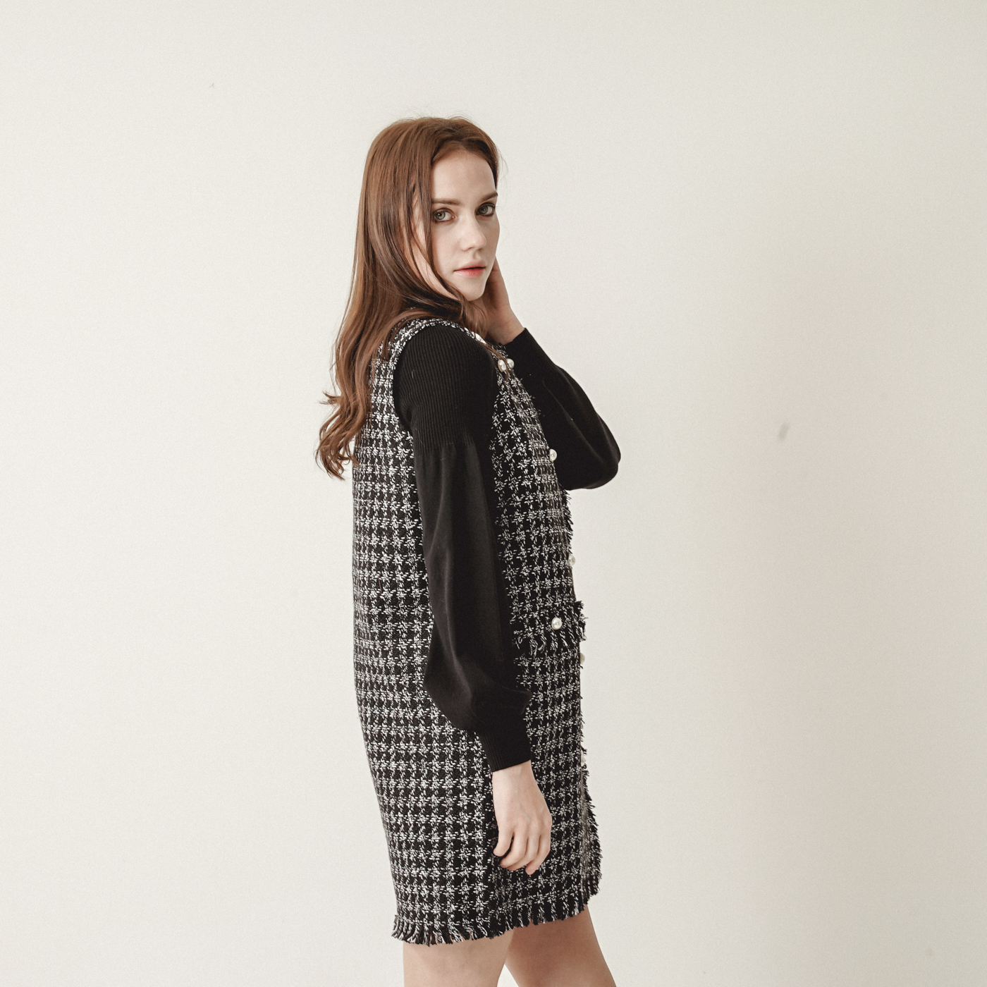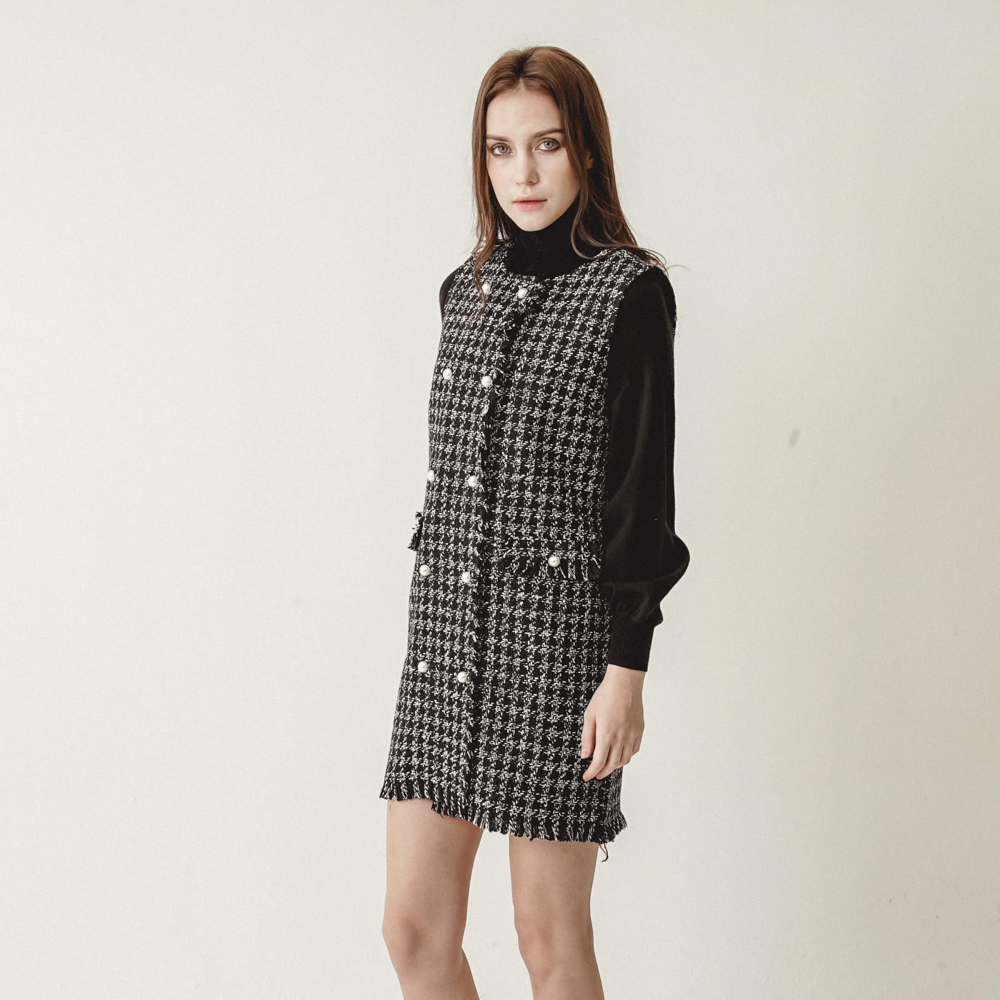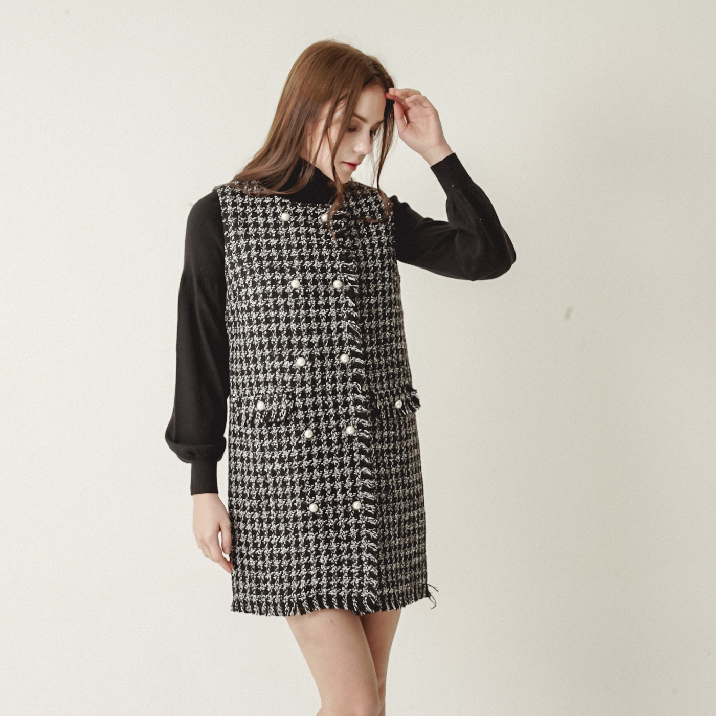 컬러감과 진주 포인트 단추가 예쁜 트위드 원피스입니다.