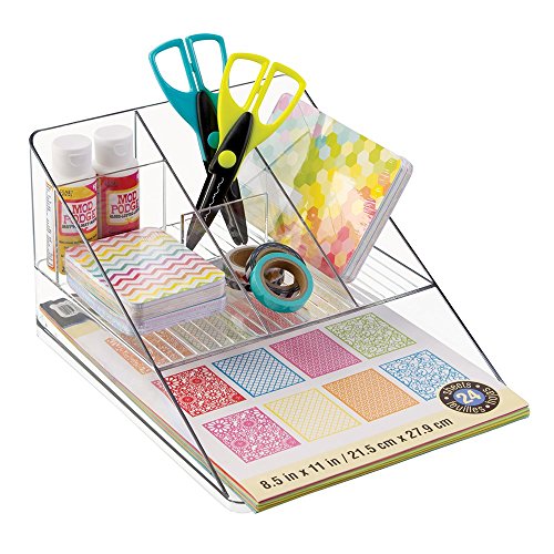 mDesign Desk Organizer for Scrapbooking Supplies, Paper, Scissors, Washi Tape, Glue - Clear