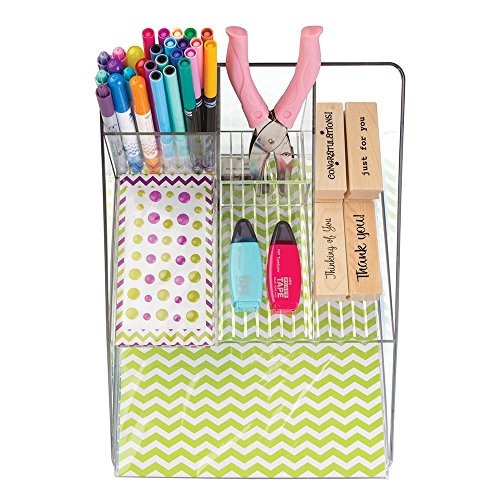 - Stores paper, glue, stickers, washi tape, hole punches, pens, markers, scissors and more