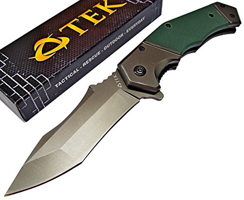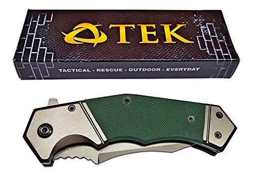 TEK Spring Assisted Opening Heavy Duty Folding Pocket Knife - Razor Sharp Modified Drop Point Blade - Tough Sure Grip G10 Handles - Lightning Fast Deployment - Only From Tactical Edge Knives
