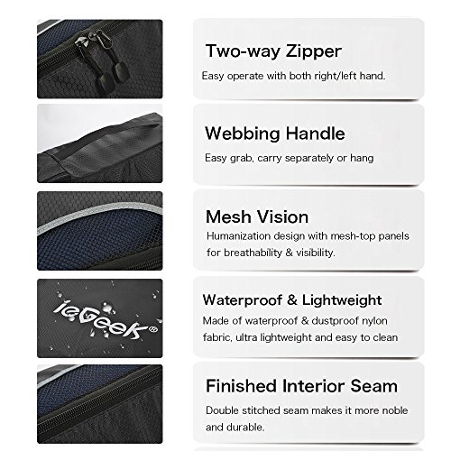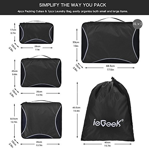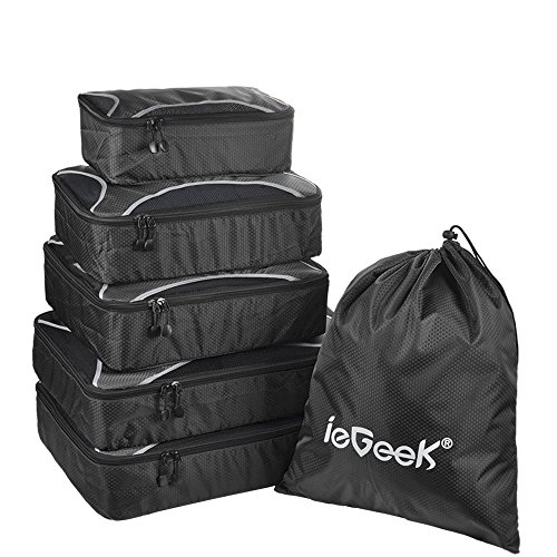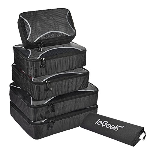 Designed in a wide variety of sizes, ieGeek Travel Packing Cubes is a great helper for you to pack & organize more luggage efficiently in less space. Ideal to keep your belongings organized & arrived in style for business travel, family break, household organize, camping, hiking.Pack More Efficiently