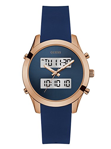 Modern meets classic with this two-tone watch, featuring digital and analog functions, a rose gold-tone bezel and navy silicone strap.