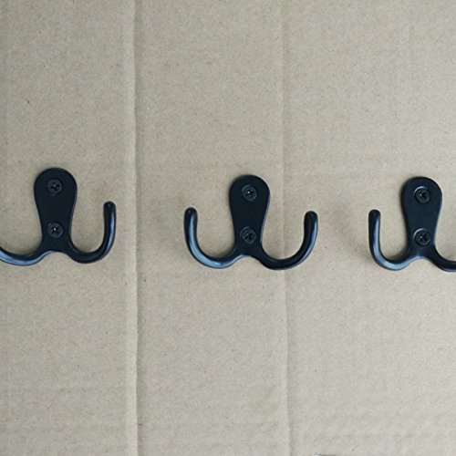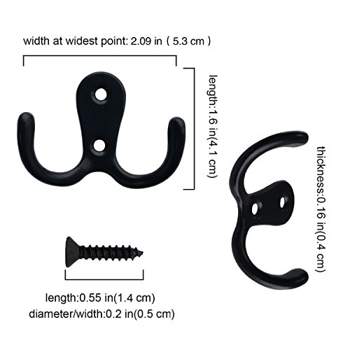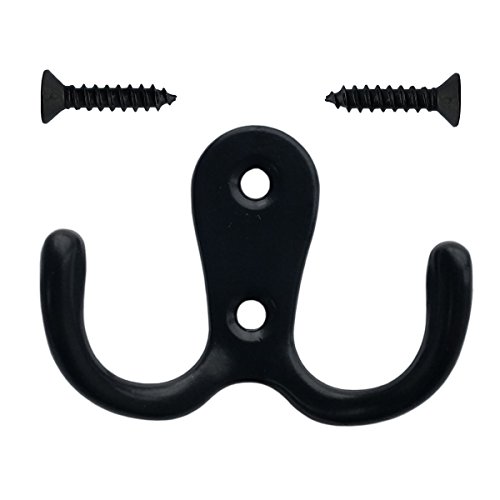 Studio : Topspeeder Publisher : Topspeeder Binding : Office Product Product Description Topspeeder 20 pieces double prong robe hook retro cloth hanger with 42 pieces screws, black color ? Retro hooks style:? These double prong robe hooks are in black color, vintage style, smooth surface for hanging coats, hats, towels, purses and so on, very useful hooks.? ? ?Zinc alloy material:? ?These robe hooks are made from zinc alloy, durable, rust and scratches resistant, recommended mounting to solid wood or wooden surface.? ? Coat and hat hook set:? ?The cloth hook dimension is 53 x 41 mm/ 2.09 x 1.61 inches, screws are 14 mm long and 5 mm in screw head diameter, withstand weight is 15 kg.? ?Special design makes double hooks beautiful, rustic, vintage, suitable for most decoration.? ?Retro hooks provide an abundance of space for hanging items and organizing, suitable for using in bedrooms, bathrooms, closets, entryway, etc.? ? ?Easy to install:? ?One hook is reinforced with two screws, match each other well, recommended mounting to solid wood or wooden studs.? ? ?Specifications:? ?Color: black ?Hook dimensions: 2.09 x 1.61 inches/ 53 x 41 mm? ?Screw length: 14 mm?