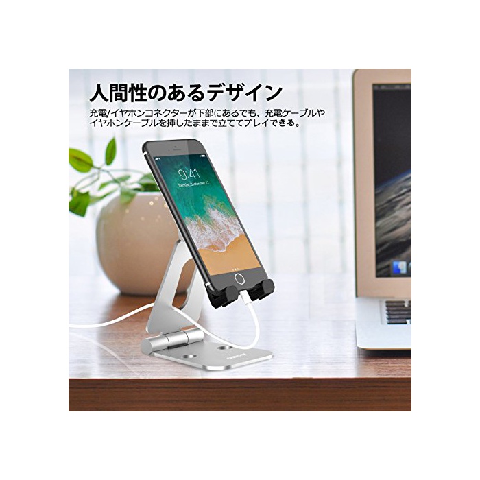 [충전 할 수 있는]충전 하면서 쓰여 각도도 조절 할 수 있는 스탠드.스탠드로 태운 채로 충전도 동시에 할 수 있는 바와 같이(하도록) 구멍이 배면에 붙어있는 때문에,거기에 전원 케이블을 들어갈 수 있을 수 있고, 깨끗하게 수습됩니다.