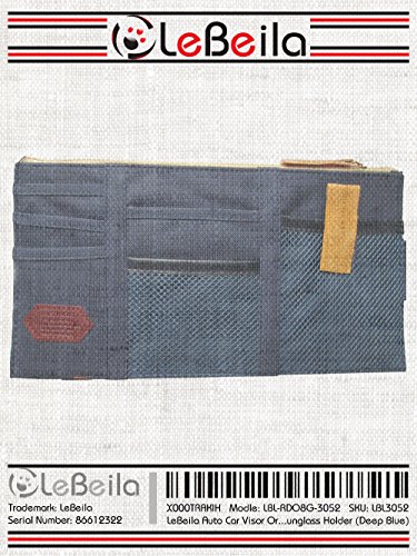 LeBeila Auto Car Visor Organizer, Multi-purpose Sun Visor Storage Pouch Bag for Card/cell phone/pen/sunglass Holder (Deep Blue)