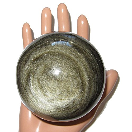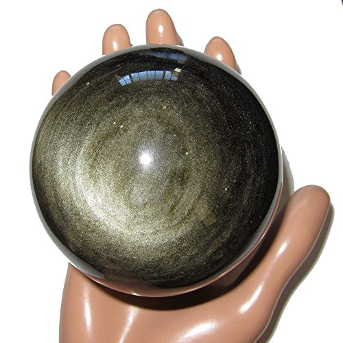 Your sphere is made from obsidian, which is volcanic glass. It appears black in normal lighting, with some white dimples and snowflake markings natural to obsidian. When placed in direct sunlight or very bright lighting, the sphere reveals wonderful gold sheen sparkles. One of a kind protective sphere hand picked by Satin Crystals for you. Receive this exact stone pictured when you order from Satin Crystals.