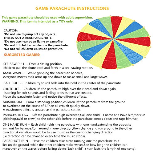 Parachute,Sonyabecca Play Parachute 20ft with 16 Handles for Kids Cooperation Group Play