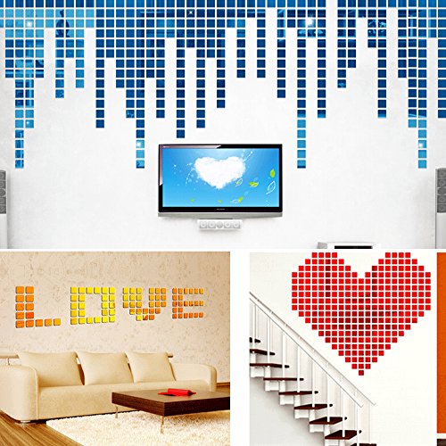-. Feature : Type: Wall Sticker / Material: Acrylic / Shape: Square / Square Size: 2cm x 2cm/0.78" x 0.78" (Approx.) / 100Pcs 2x2cm Acrylic 3D Mural Wall Stickers Mosaic Mirror Effect Room DIY Square Decor.
