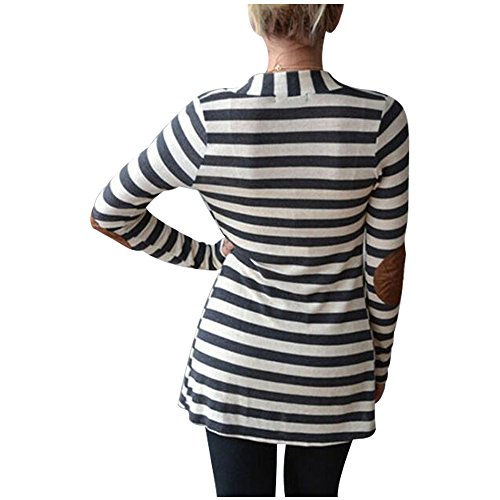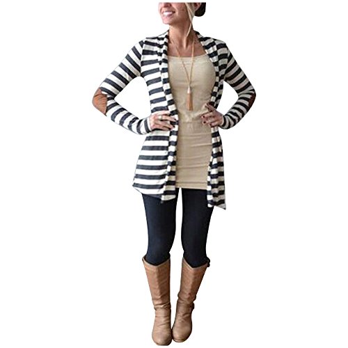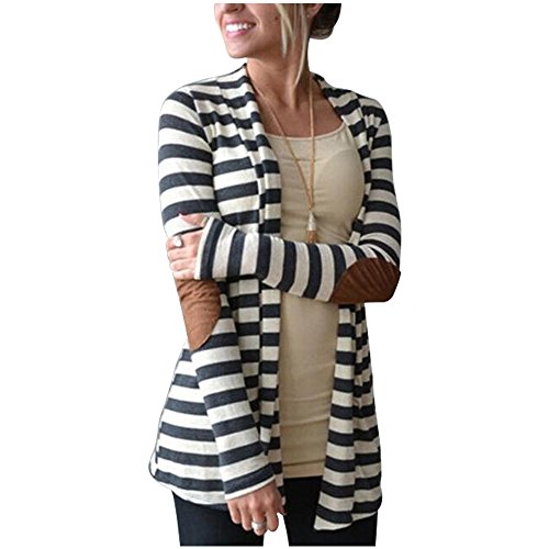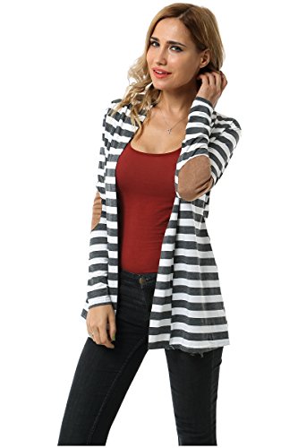 Binding : Apparel Product Description Features: * Brand New High quality. * Fashionable and Comfy. * Stylish dress fits most women ,Lady. * Sleeve Style : Long Sleeve . * Collar: Shawl Collar * Decoration:Elbow Patch * Pattern : Patchwork . * Closure Type :Open stitch * Material:85% Polyester 15% Cotton.Extremely comfortable when you are wearing it. * Features:long sleeve,black white striped,patch in sleeve,lightweight. Wash:Hand wash in cold water / Do not bleach / Line dry.It won't shrink after wash and dried. * Season:for any season since it is not very thin nor thick.Perfect wearing when you are going out in spring and autumn.In winter,you can wear it in room.Also you can wear it even in summer when you are in room whose air conditioning is opening.