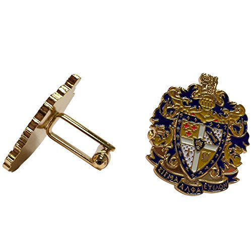 -. Title : Sigma Alpha Epsilon SAE Fraternity Colored Crest Gold Cufflinks