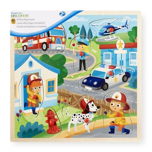 Studio : Toys R Us Publisher : Toys R Us Product Description Find all your rescue friends as you put together the Imaginarium 8 Piece Peg Puzzle. This colorful wooden puzzle comes with 8 pieces shaped like different rescue friends and vehicles. Use the pegs to fit each puzzle piece into its designated spot in the colorful picture. Can you find the helicopter? The Imaginarium Universe of Imagination Discovery 8 Piece Peg Puzzle - Rescue Features: 1 Wooden 8 piece peg puzzle Designed with a colorful community setting Board and pieces constructed out of durable wood Dimensions: 12 x 12 inches Weight:1 pound Ages 2 and up 0